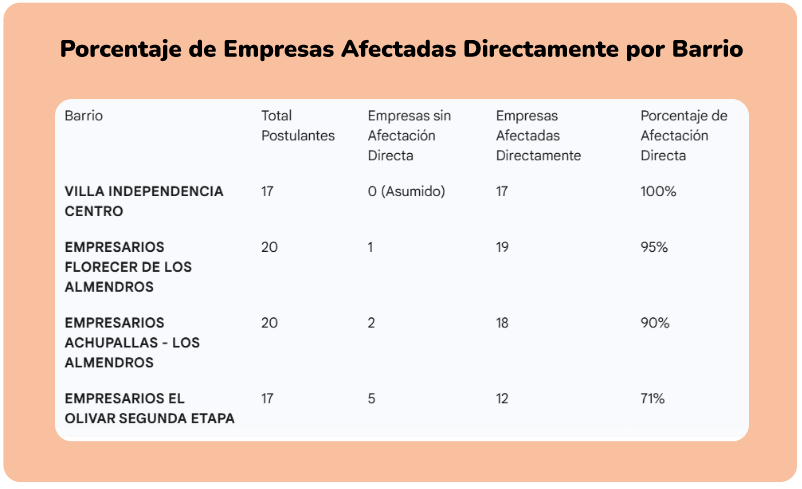 3. El 80% de los comercios deben tener afectación directa.